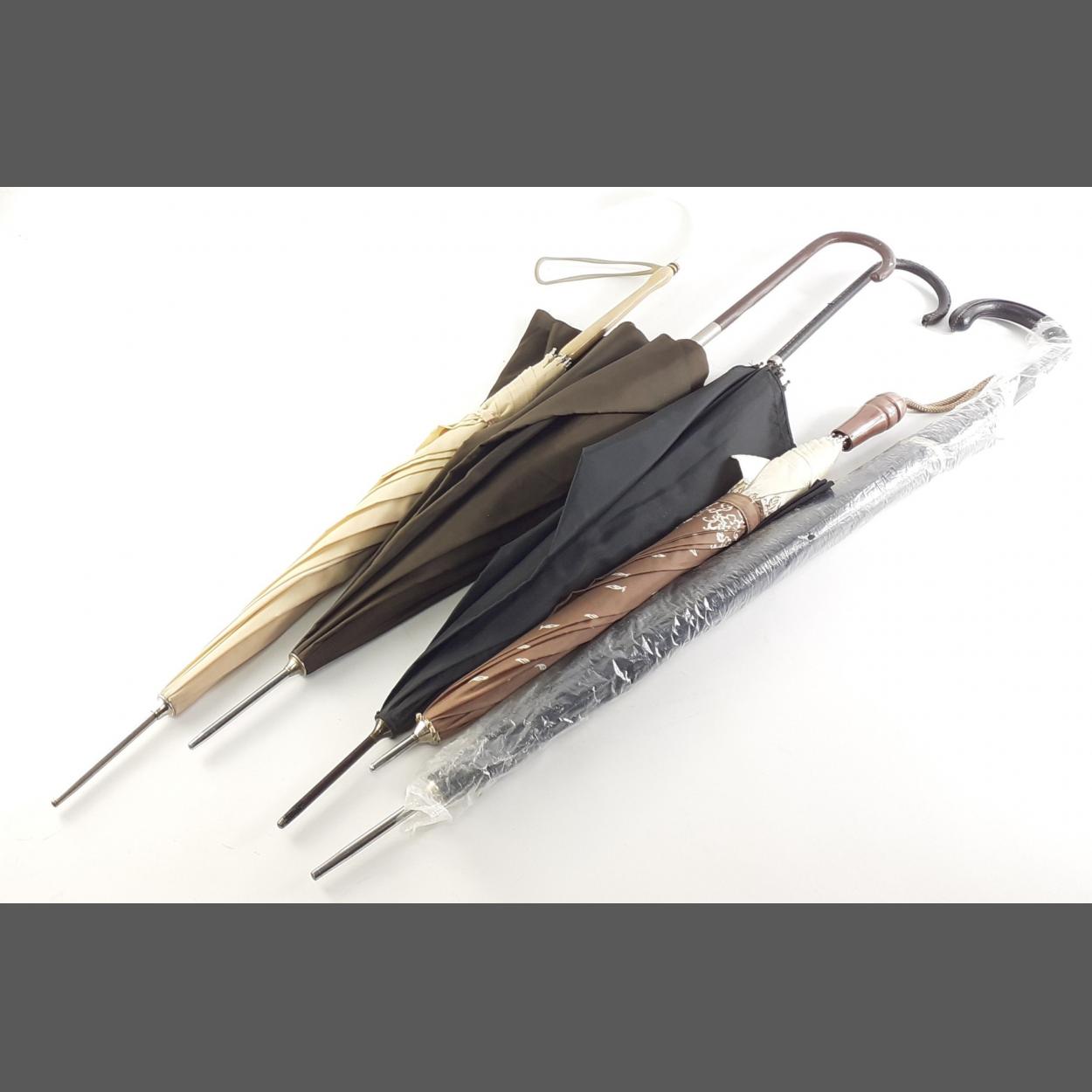 Five stylish and well cared for umbrellas.