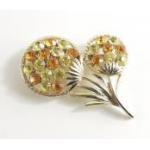 EXQUISITE vintage brooch! - set with CITRINE & AMBER style set stones in floral leaf form pin brooch - initialed stamp indistinct on the reverse (TT of JJ??)....dimension 5.5cm height x 5cm width approx