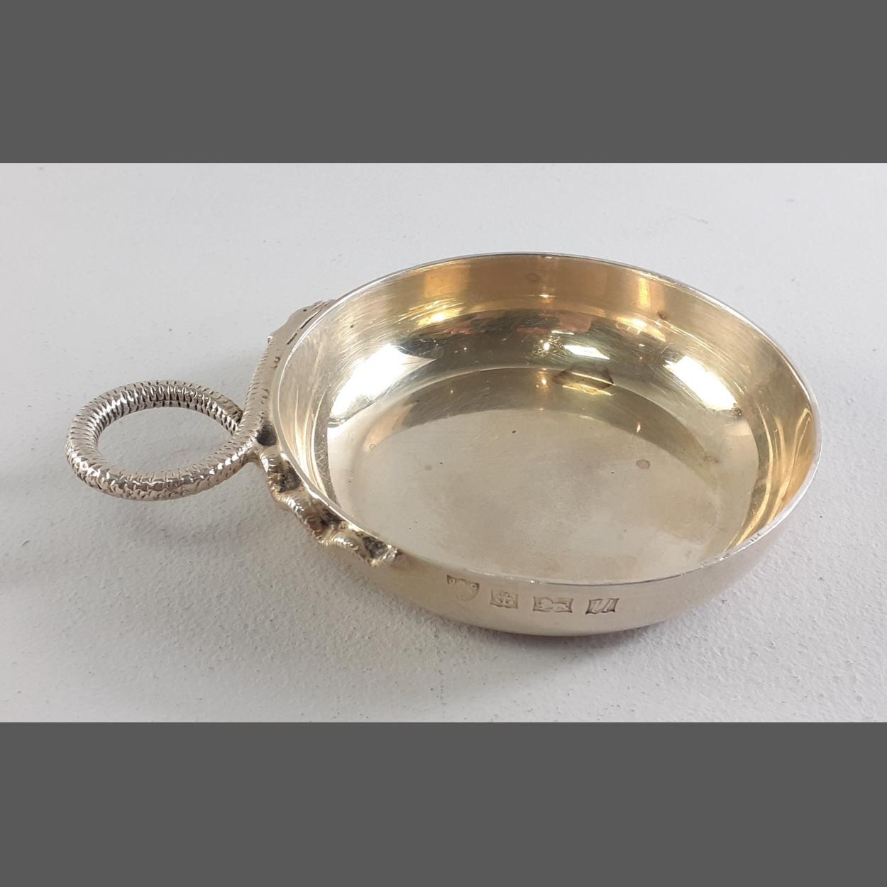 An impressive fully hallmarked sterling silver wine taster with name handle. Hallmarks for Birmingham 1969. Maker J B Chatterley & Sons Ltd. Unweighted. Weight 113g approx. A beautiful piece in lovely condition.
