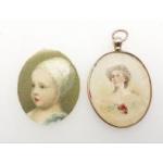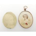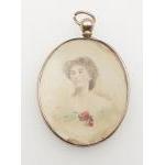 A 375 hallmarked double-sided oval miniature portraits of HENRIETTA MIDDLETON by MARY ROBERTS, one of the set of five miniatures which portrays a group of cousins, the children of brothers William (1710-1775) and Henry (1717-1784) Middleton of Charleston, South Carolina, and Suffolk, England.
