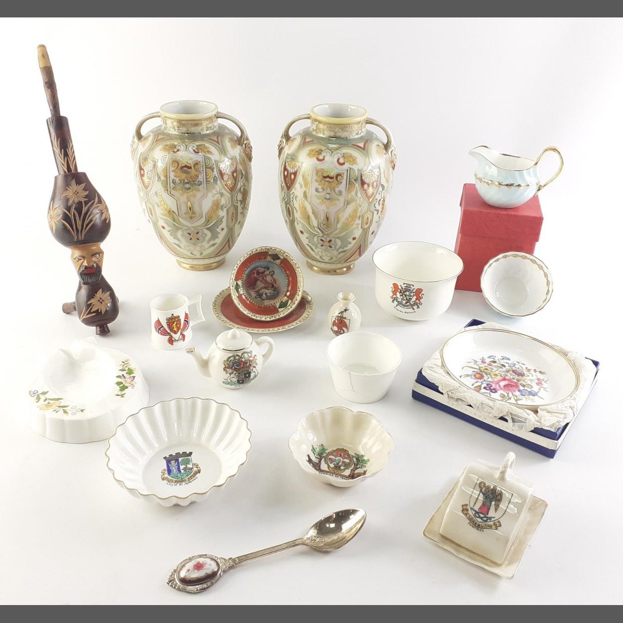 A mixed lot of two NORITAKE vases, ROYAL WORCESTER plate, miniature bone china cup and saucer and others.