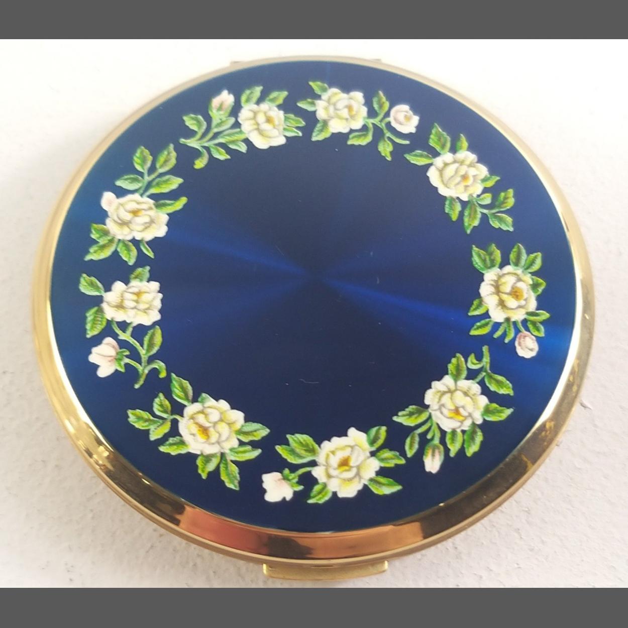 A STRATTON powder compact with enamel front with rose design, 80mm approx.