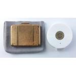 An KGU 'Bon Voyage' suitcase shaped powder compact, possibly Queen Mary line plus an ELIZABETH ARDEN invisible veil compact with contents
