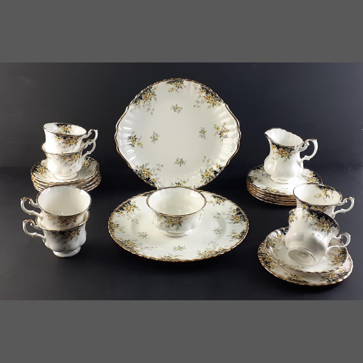 ROYAL ASCOT part tea service comprising sandwich plate and cake plate, 6 side plates, 6 each of cups and saucers, sugar and cream.