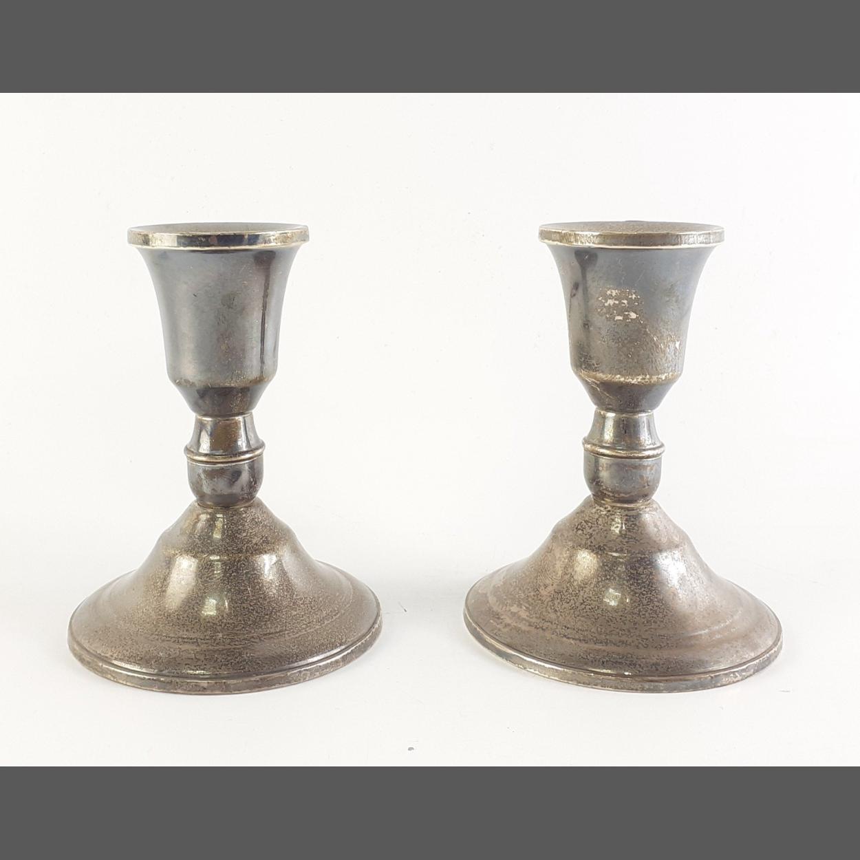 A pair of DUCHIN CREATION small sterling silver weighted candle holders. Each 95cm tall approx. Nice condition would benefit from a clean.