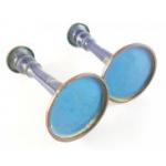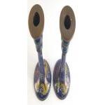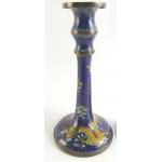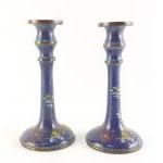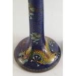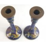 A pair of Oriental cloisonne brass candlesticks with dragon design. Standing approx 15cm tall