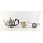 A hallmarked silver tea service comprising teapot, milk jug and sugar. Bears hallmarks for Birmingham 1969. Maker AT CANNON. Gross weight 622g approx