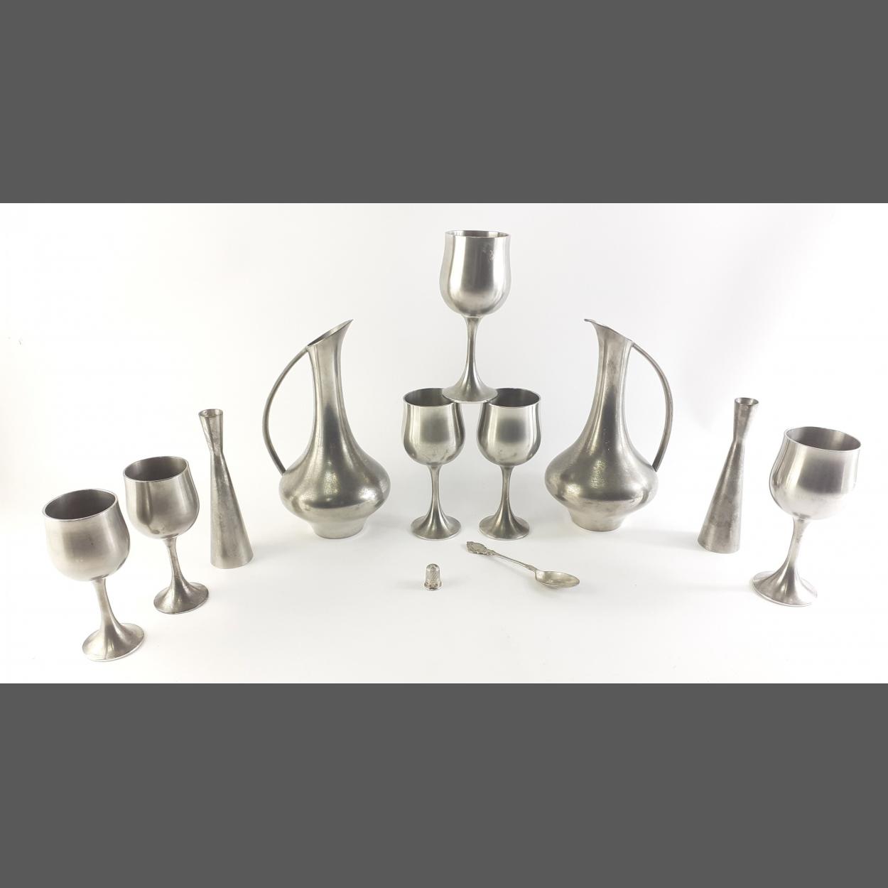 A nice collection of SELANGOR pewter to include 2 flasks, 4 wine goblets and 2 smaller goblets plus two posy vases (15cm approx)