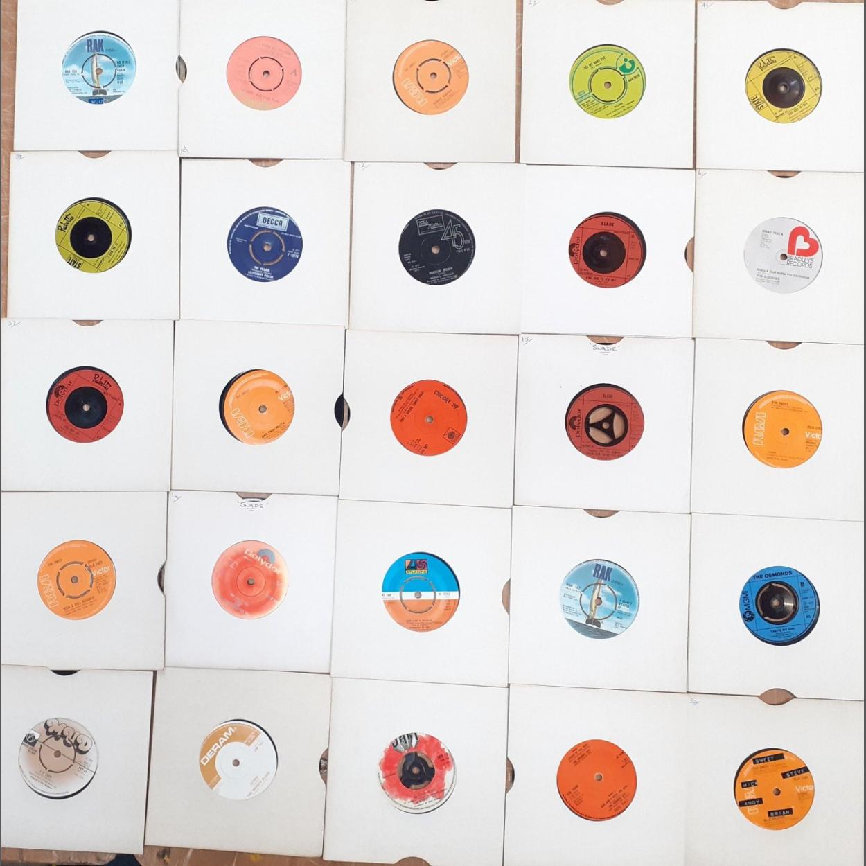 A large quantity of 45rpms in well stored condition. Artists include: MOODY BLUES, SLADE, ABBA, HOT CHOCOLATE, QUEEN, REZILLOS, CELIA, MUD, RAINBOW, ARROWS, COZY POWELL, HAZEL O'CONNOR.