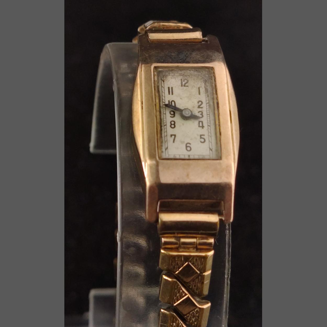 A 375 case stamped gold watch. Bracelet unmarked
