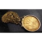 A 1907 Edward VII half sovereign in 375 mount and RG chain. Gross weight excluding chain 5g approx.