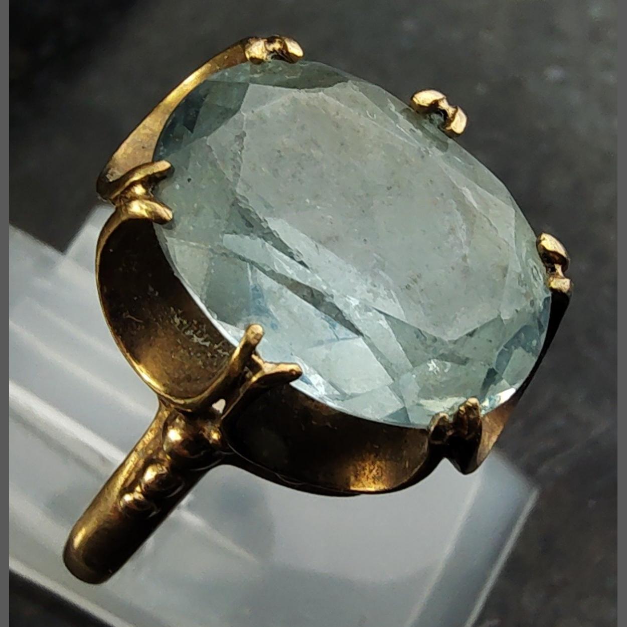 A 375 marked ring with a REMARKABLE pale blue stone. Size O. Gross weight 3.35g approx.