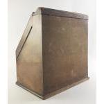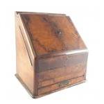 An antique wooden walnut desktop stationery box. Removeable folding slope to bottom. A truly lovely piece. Some minor honest wear. 30cm x 24cm x 35cm approx