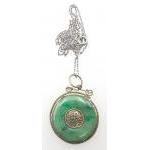A gorgeous JADE pendant approx 27cm across. Base mount and base metal chain. Break noted to mount.