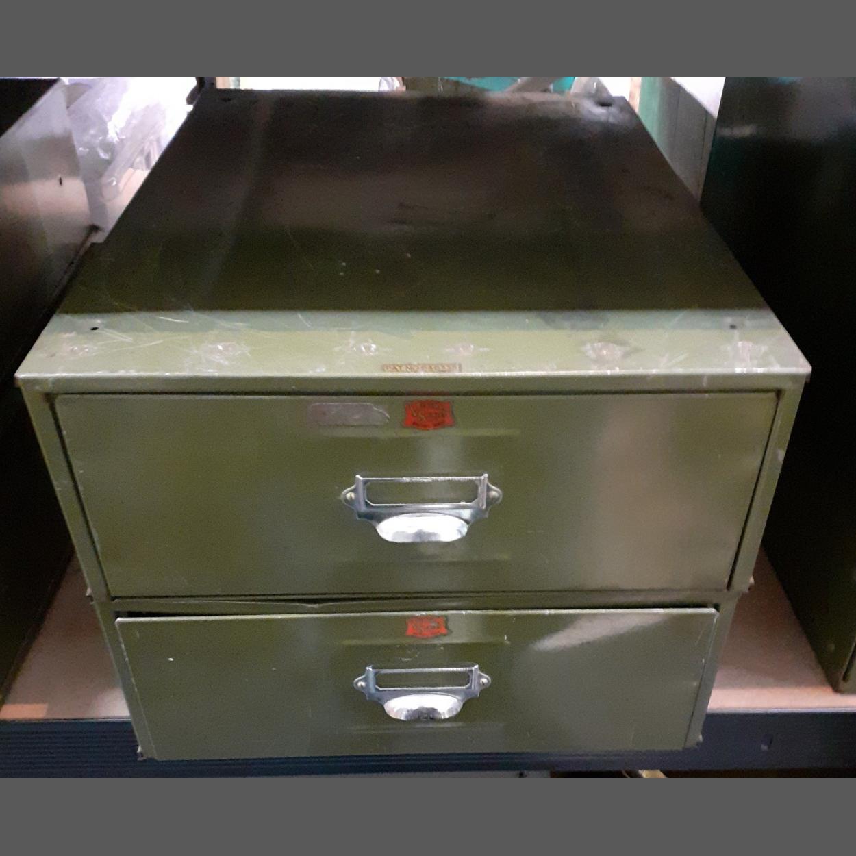 THEY LOOK THE PART! - Vintage c1950's VETERAN SERIES khaki green metal drawer set of two (individual drawers) - dimensions of each identical width 40cm x depth 55cm x height 16cm approx