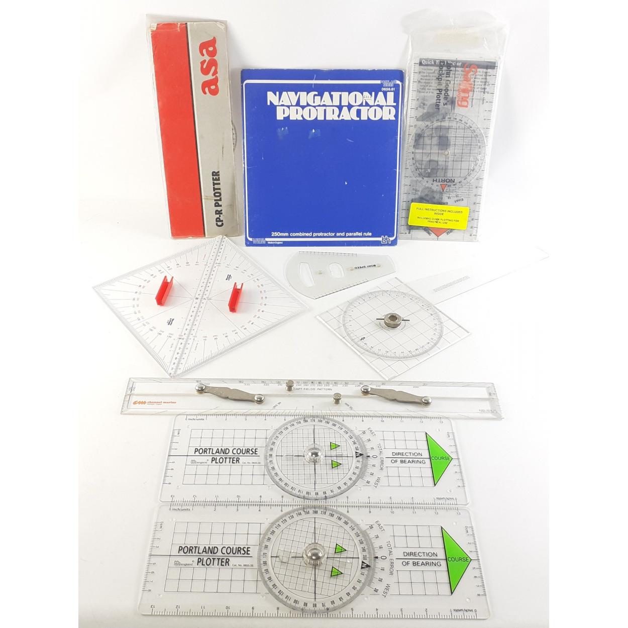 A great navigational survey equipment lot to include Marine Navigation parallel ruler and much else.