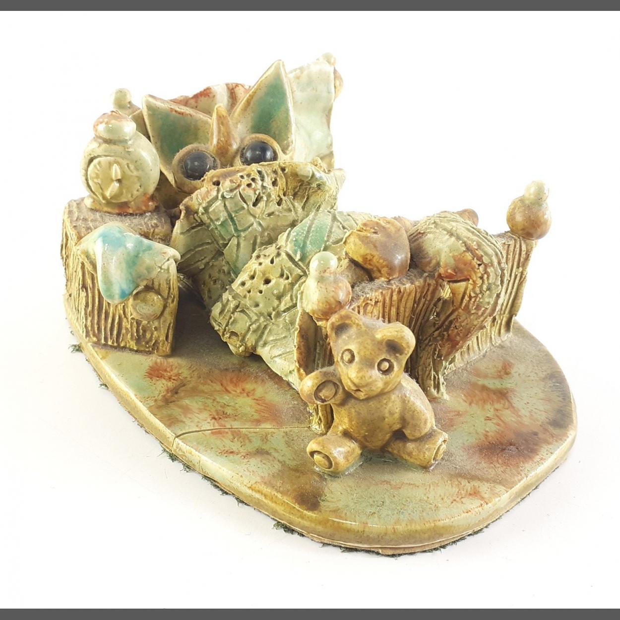 YARE DESIGN. A cute wee dragon hiding under the covers of a bed. 15cm across and in good undamaged condition.