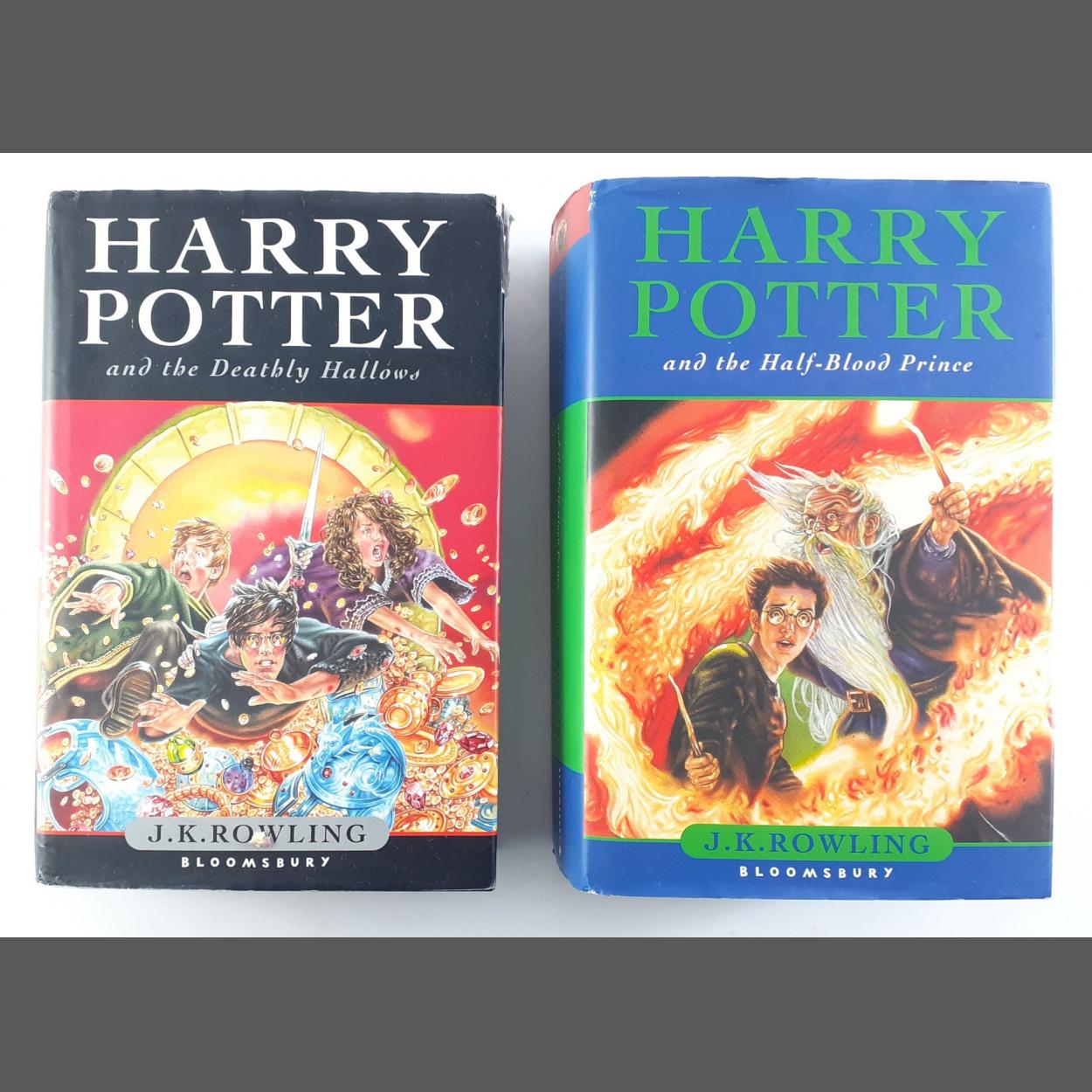 HARRY POTTER and the Half Blood Price (first edition) and HARRY POTTER and the Deathly Hallows (first edition). Minor chips and light wear to dust jackets.