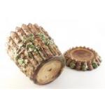 A lovely MAJOLICA picket fence style plant pot and stand. A few historical minor nibbles to the very points but overall in nice condition. Stands approx 16cm high