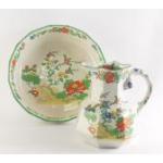 A MASON's ewer (20cm) and basin (29cm) with historical crack.
