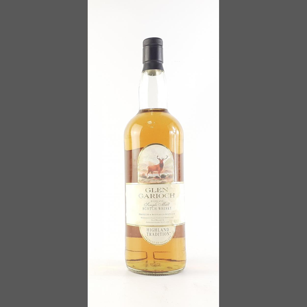 A one litre bottle of GLEN GARIOCH Highland Tradition single malt Scotch whisky