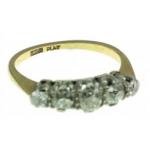 A stunning 18ct and platinum marked five diamond (tested) ring. The largest stone 3mm approx, all stones in good clear undamaged condition. Size P, approx gross weight 3.25g