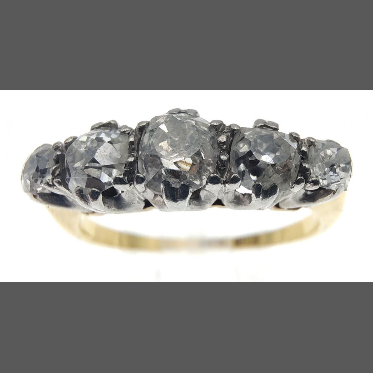 A stunning 18ct and platinum marked five diamond (tested) ring. The largest stone 3mm approx, all stones in good clear undamaged condition. Size P, approx gross weight 3.25g