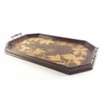 An antique wooden tray with inlaid vine design. Measures 60 x 35cm approx