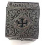 A lovely Gothic revival carved oak alms box. H19 x W20 x D22cm approx