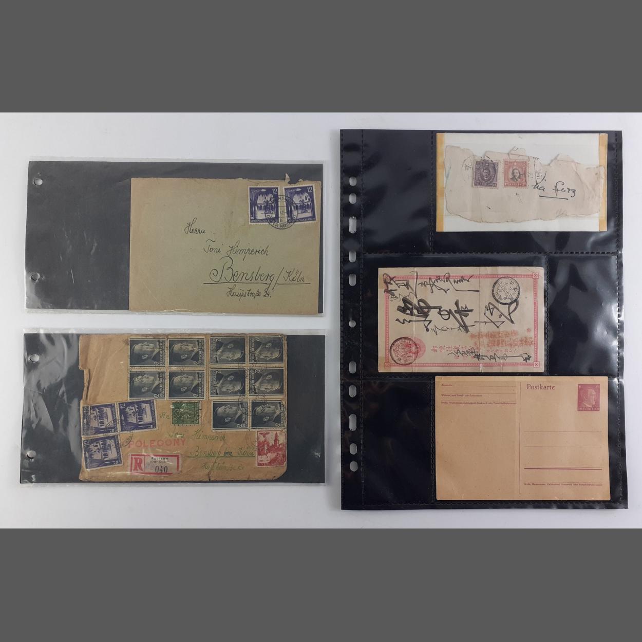 POSTAL HISTORY. Three postal covers envelopes with WWII German occupation interest and two Japanese interest covers.