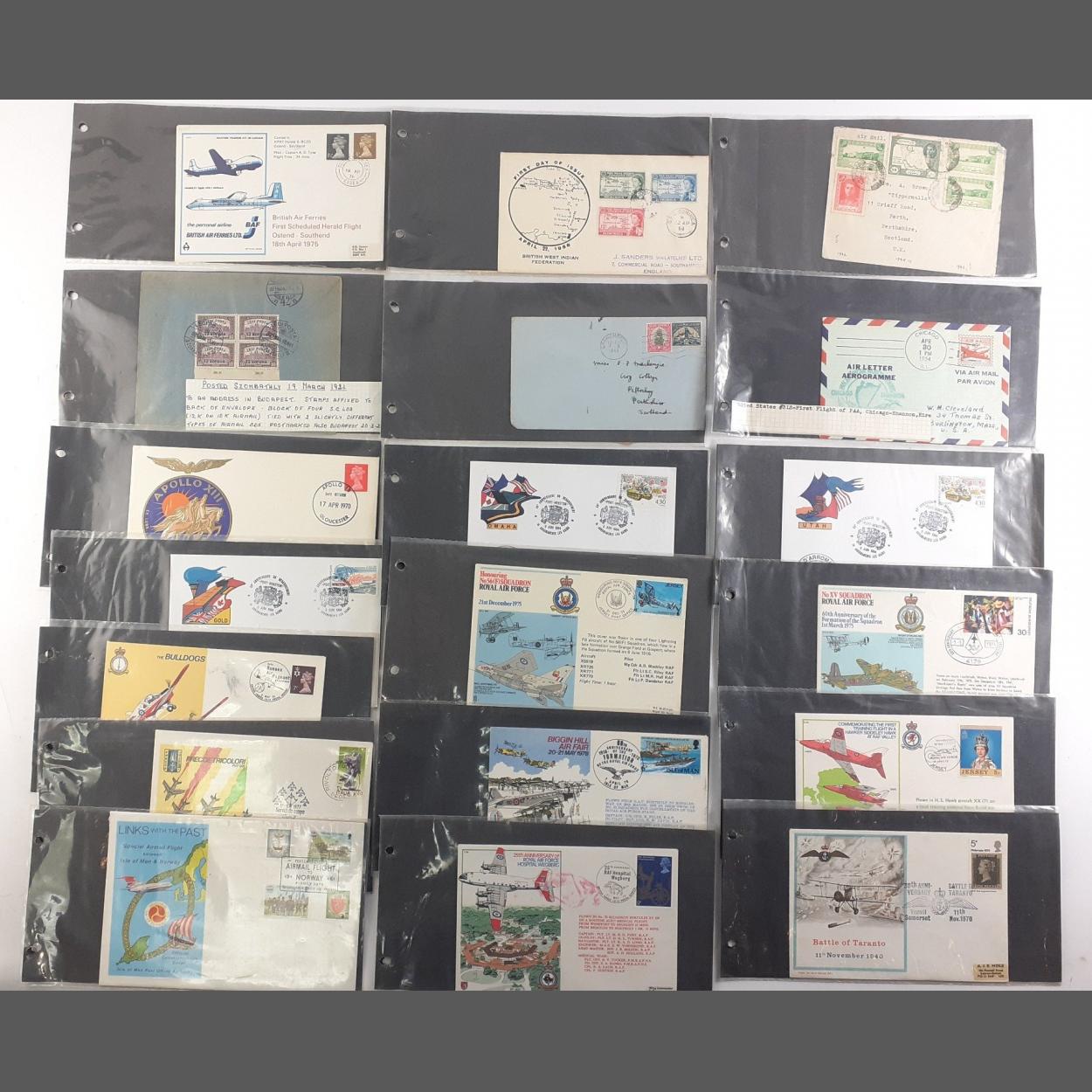 A great collection of flight covers and others of interest to include 1954 FIRST FLIGHT Pan American Chicago to Shannon, 1975 British Air Ferries Ostend - Southend, Apollo XIII safe return cover, 1948 Iranian (Persia ) and others with flight interest. A very nice lot.