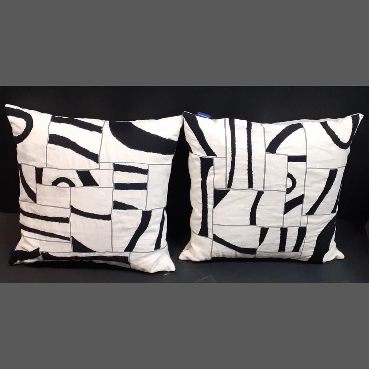 Two CONRAN SHOP IRREGULAR GRID cushions in black and white, 40cm x 40cm approx