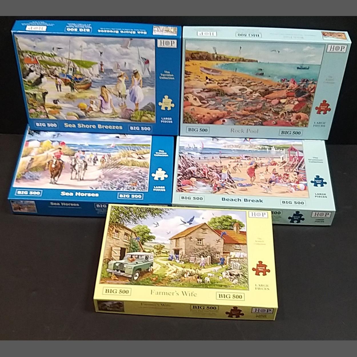 Get ready for the long winter nights. JIGSAWS 500 Piece x 5 All by HOP. Rock Pool, Beach Break, Farmer's Wife, Sea Shore Breeze, Sea Horses. All jigsaws have been checked and are complete and in good condition