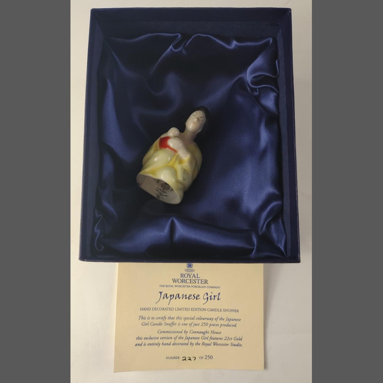 ROYAL WORCESTER limited edition JAPANESE GIRL. (227/250) 7cm tall candle snuffer in box with certificate. A lovely item.