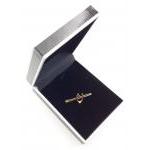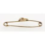 A 9ct stamped 'wishbone-form' brooch with a centred pink ruby - the brooch is in a safety pin design - gross weight 0.74g - this item comes in a rather smart jewellery box!