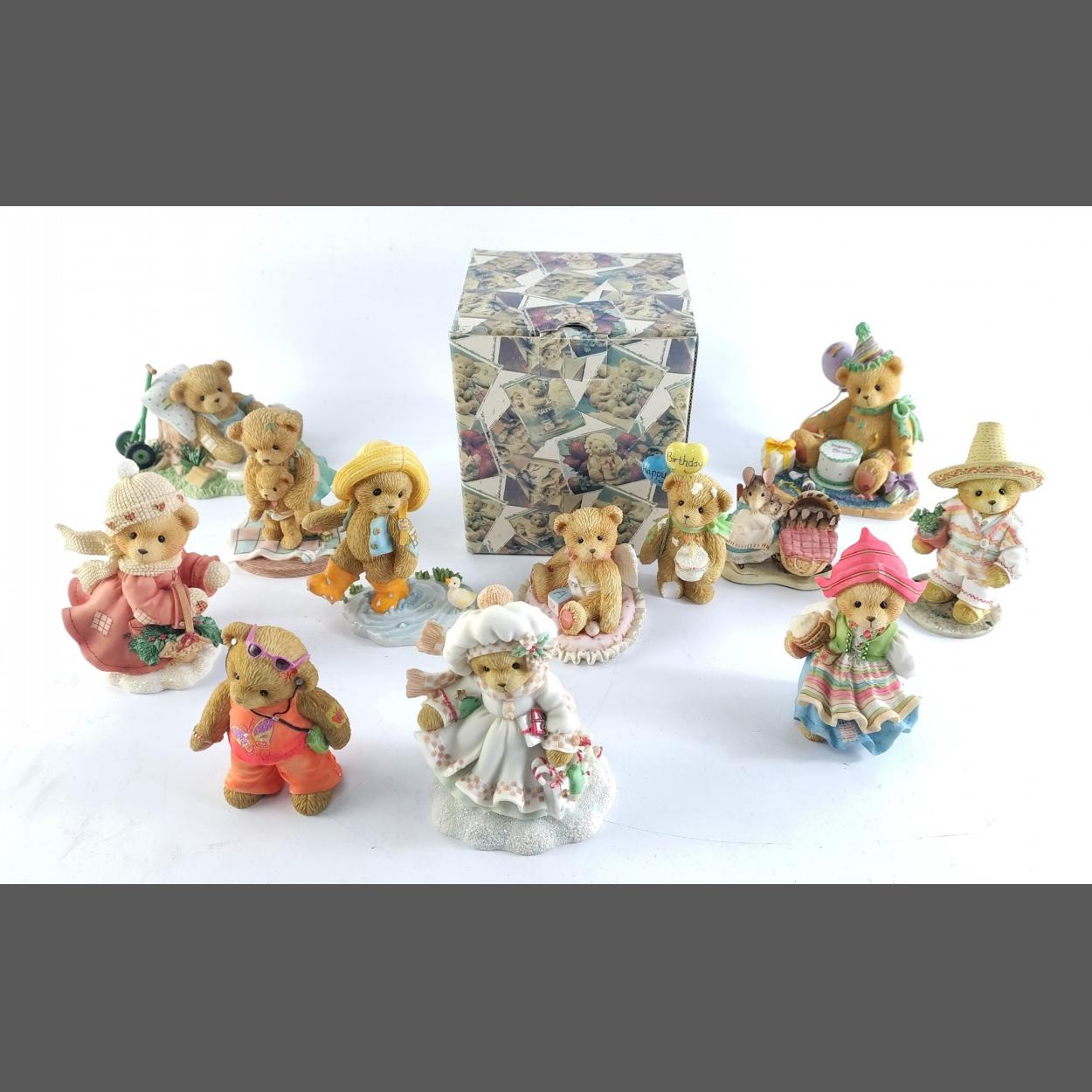 A collection of twelve CHERISHED TEDDIES to include Suzy, Frances, Shirley, Kerstin. Plus an undamaged boxed Roger. There is damage to one foot on a small figure. Others in good condition.