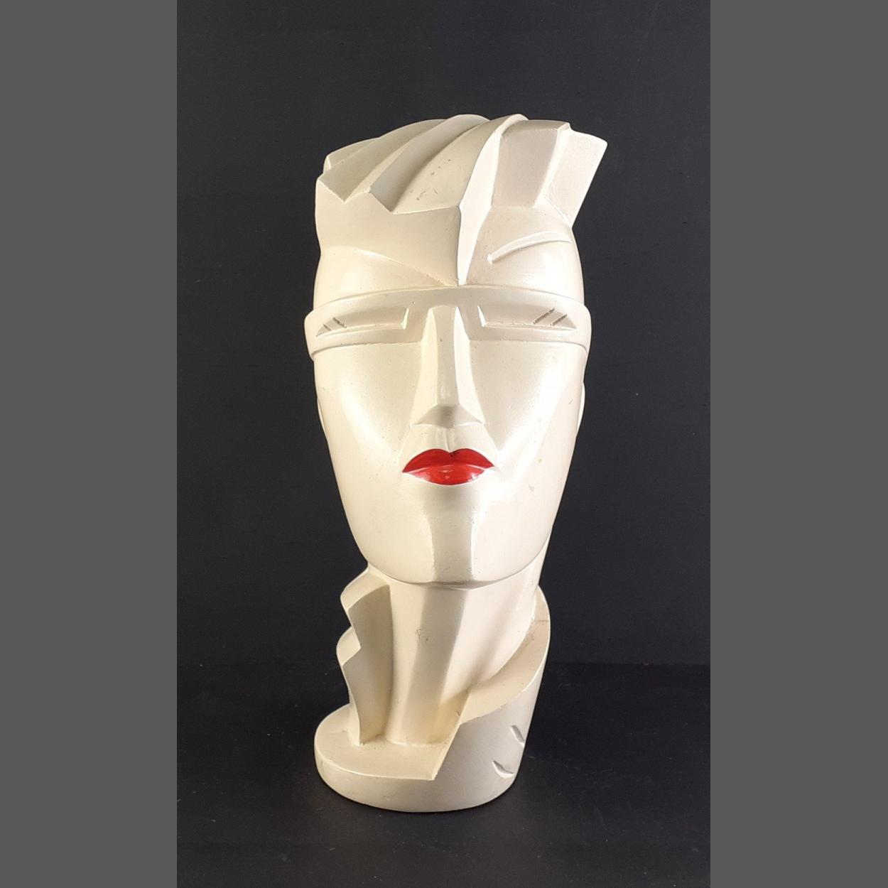 A LINDSAY BULKWEILL 1984 ceramic head Art Deco style sculpture standing 21cm approx signed Lindsey B.