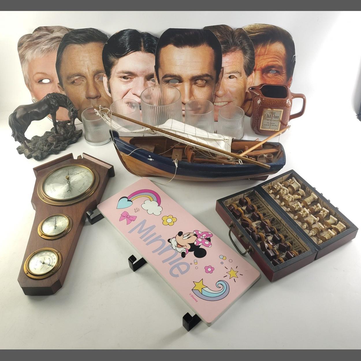 Decorative mixed lot to include a sailing boat, barometer, bronze style horse, decorative lights.