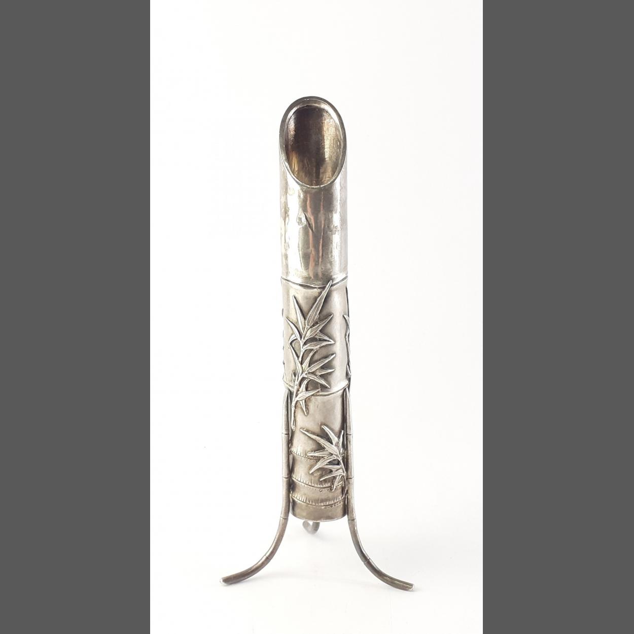 A scarce WANG HING & Co. Early Twentieth Century Chinese (Hong Kong) silver import marked bamboo shoot posy vase. Stamped WH 90 and Chinese character mark. Stands 20cm approx. A very pretty piece. Gross weight 92g approx.
