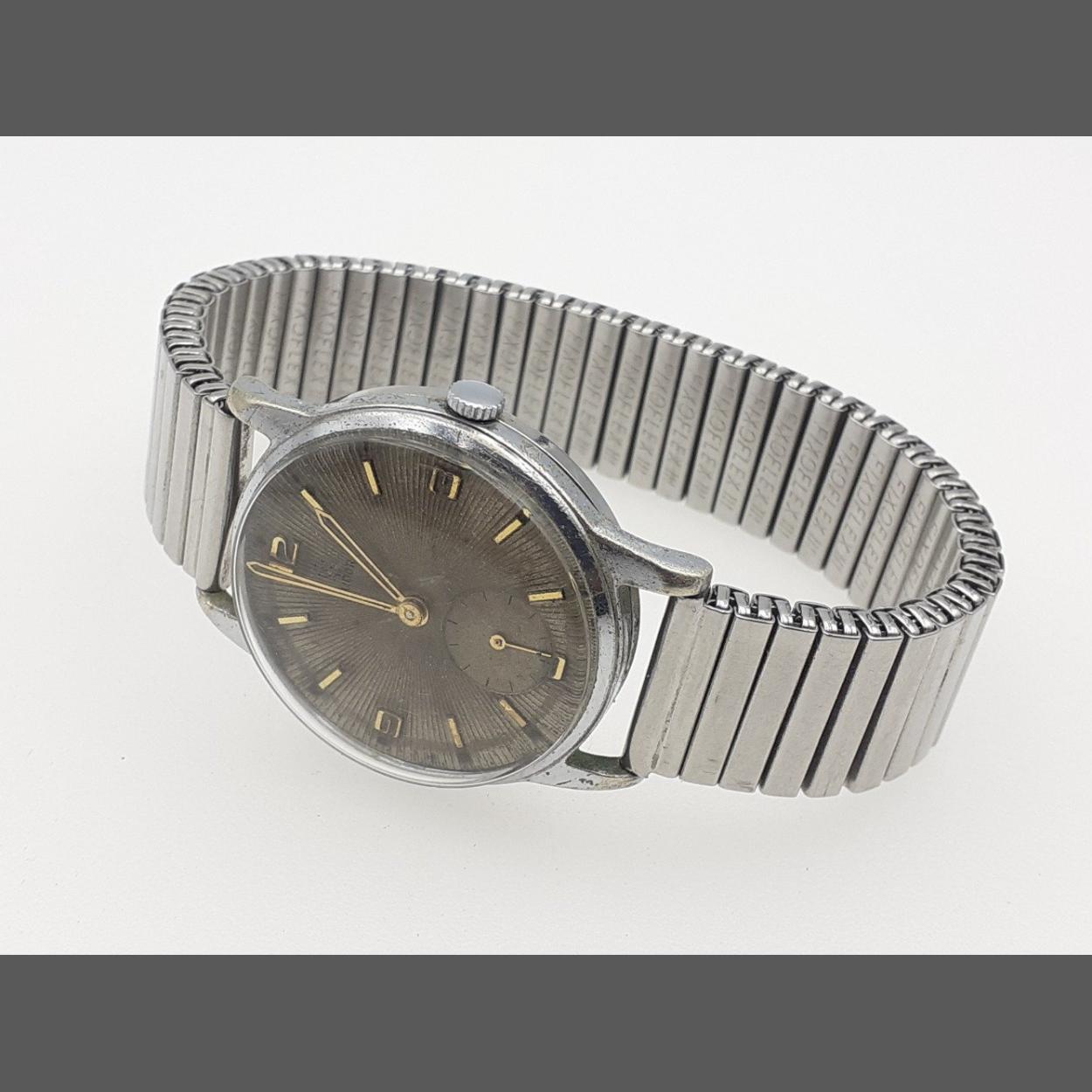A TUDOR 15 rubies stainless steel cased gents wrist watch on expanding band. Case internally marked ''Dennison, made in England for ROLEX' . The face is a little dirty but the watch is running although not checked for accuracy.