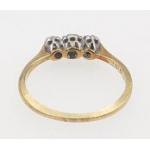 An 18ct Plat stamped three diamond ring. Centre stone 2mm approx, all clean stones. Size K. Gross weight 1.6g approx