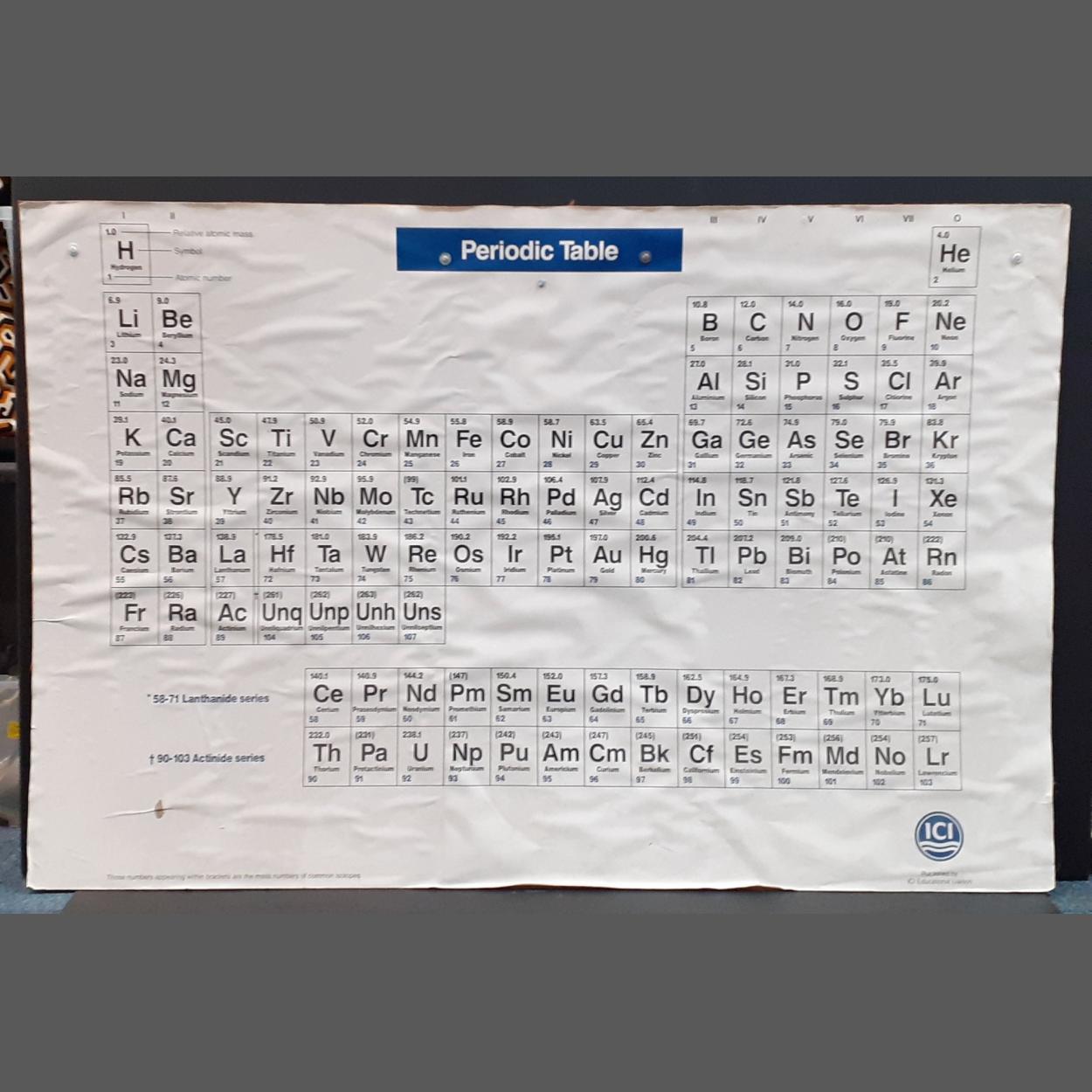 Peebles High School fund raising - a large hanging periodic table on hardboard back. 115 x 76cm approx