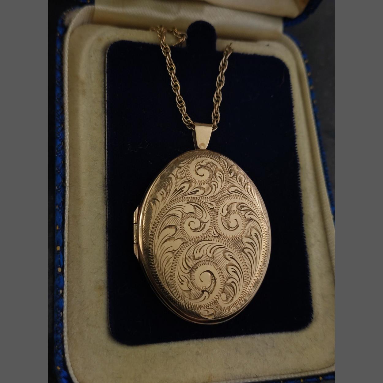 A fully hallmarked large 3.3cm locket with 9ct chain. Total gross weight 16.7g approx