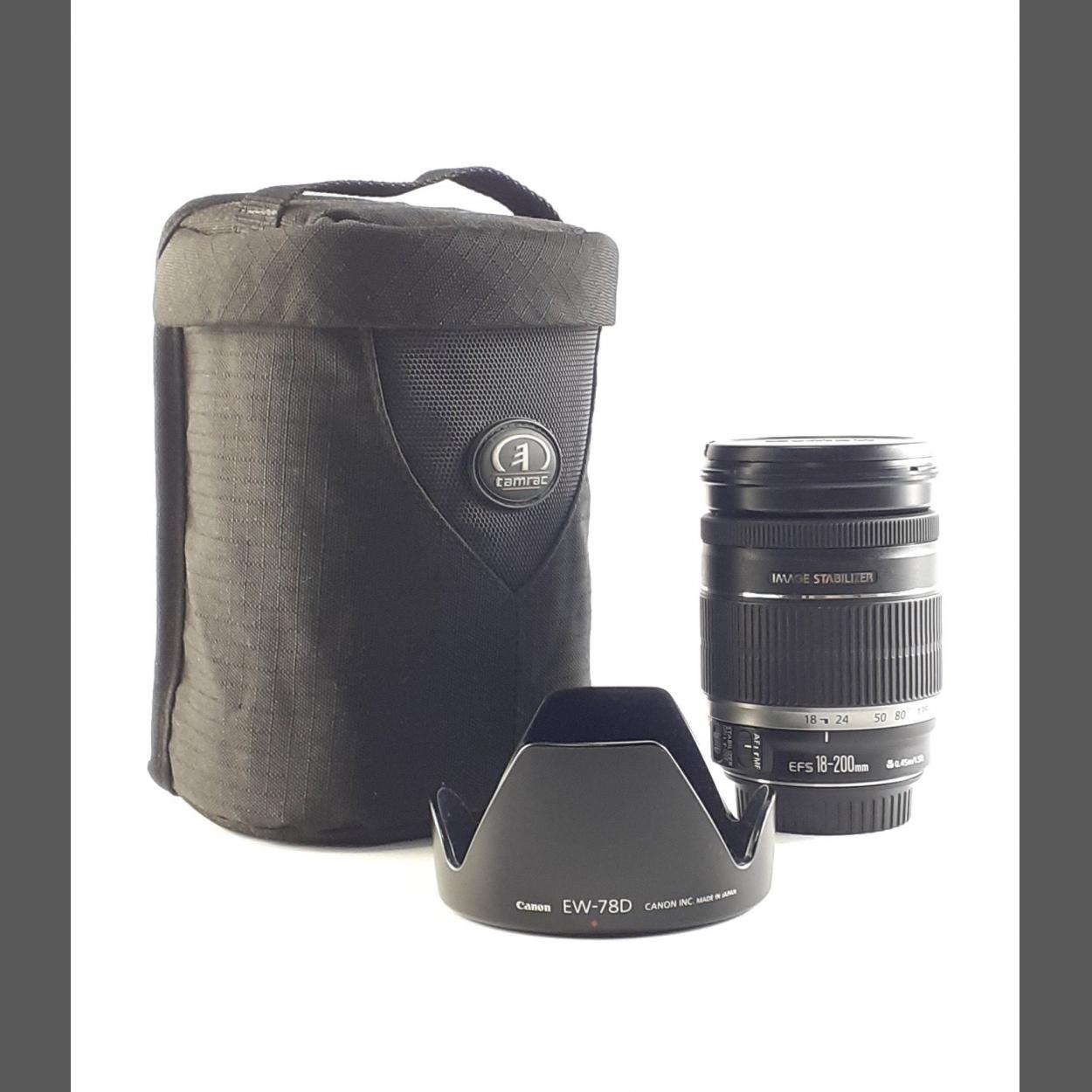A CANON EF-S 18-200mm f/3.5-5.6 lens in case. No dust