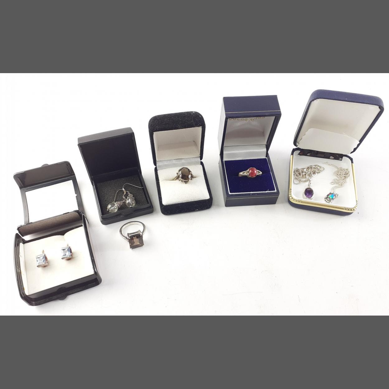 Small silver jewellery lot to include chains and pendants, earrings and a ring.