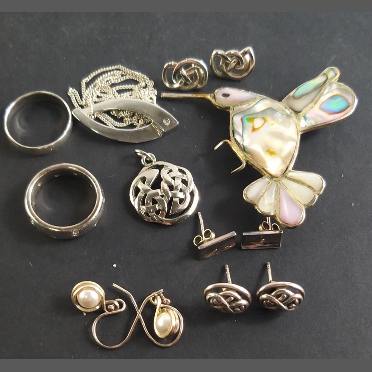 Great lot of good quality SILVER jewellery to include 925 stamped ring, pendant. Chain with pendant and a Mexican silver hummingbird brooch. Good lot. Total gross weight 31.5g approx