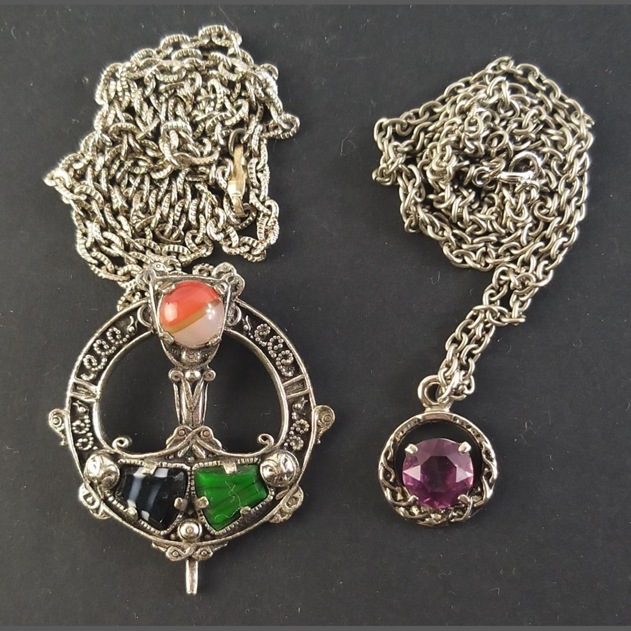 A Scottish style MIRACLE pendant on chain and one other with purple stone