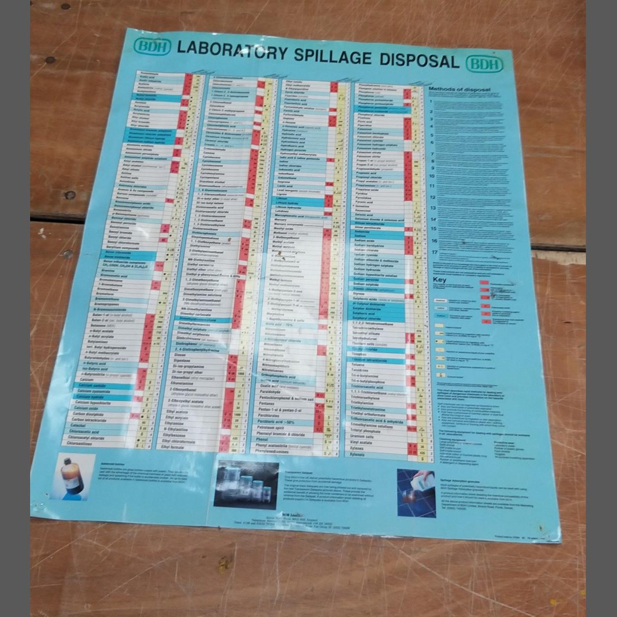 Peebles High School fund raising - Science dept - A large SPILLAGE DISPOSAL WALL CHART from circa 1980's - dimension 84cm x 64cm approx