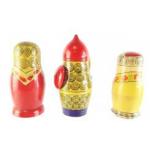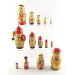 Three sets of Russian nesting dolls, two Babushka and one scarcer Matryoshka Clubbed warrior. All in good condition. .