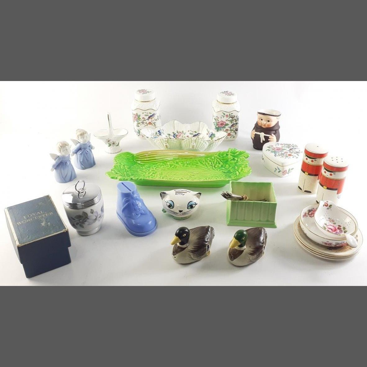 A good mixed lot of ceramic and decorative items to include Soldier Salt & Pepper, Aynsley and others.